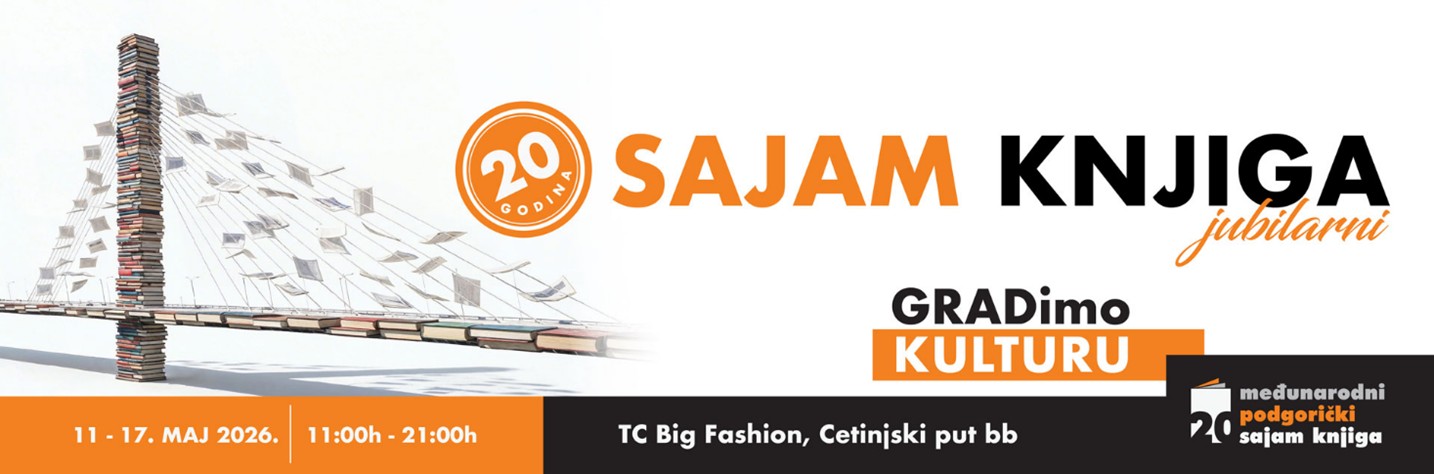 Pozivamo Vas na prijavu za sudjelovanje na 20. međunarodni podgorički sajam knjige, koji će se održati od 11. do 17. svibnja 2026. godine, na već poznatoj lokaciji – u garaži Tržnog centra BIG Fashion.