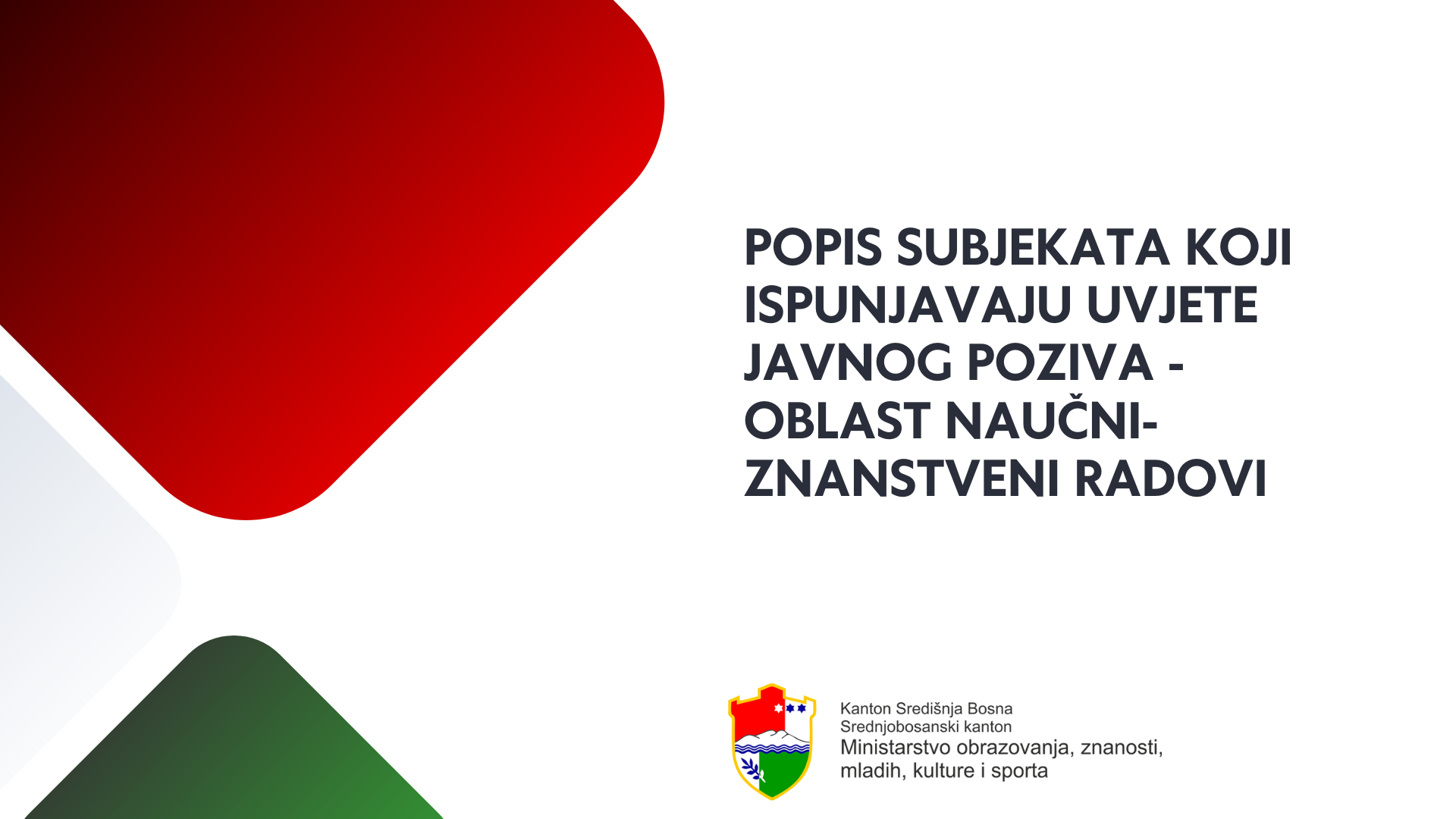 POPIS SUBJEKATA KOJI ISPUNJAVAJU UVJETE JAVNOG POZIVA – OBLAST NAUČNI-ZNANSTVENI RADOVI