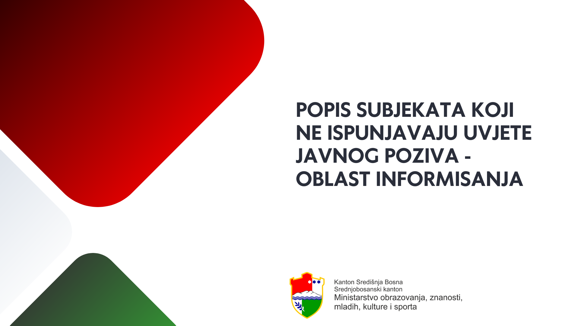 POPIS SUBJEKATA KOJI NE ISPUNJAVAJU UVJETE JAVNOG POZIVA – OBLAST INFORMISANJA
